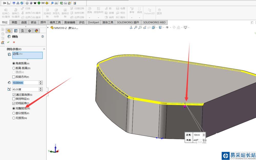 以上就是Solidworks選擇需要倒角的一條直線教程,希望大家喜歡,請(qǐng)繼續(xù)關(guān)注錯(cuò)新站長(zhǎng)站。