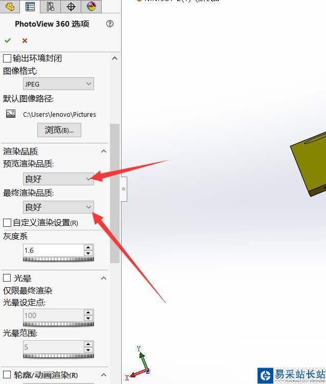 6、點開選項之后,在里面可以設置預覽的品質以及之后渲染之后的品質。