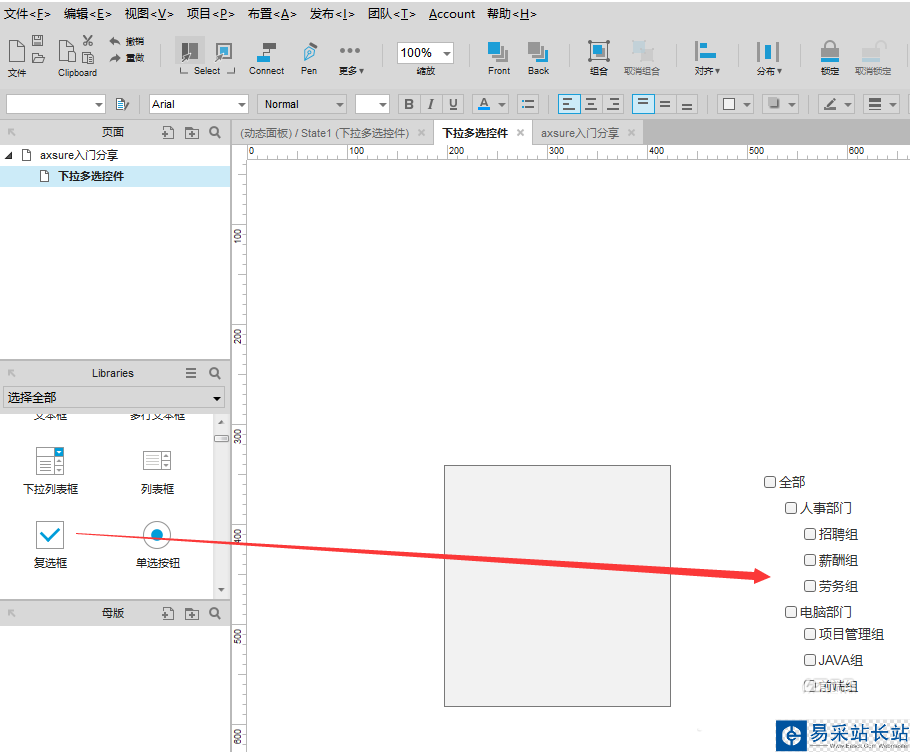 axure中想要制作一個下拉多選部門的控件,可以應(yīng)用在企業(yè)管理或者BPM相關(guān)流程等場景,例如選擇只給保安部門的人發(fā)消防通知,該怎么制作呢?下面我們就來看看詳細(xì)的教程。