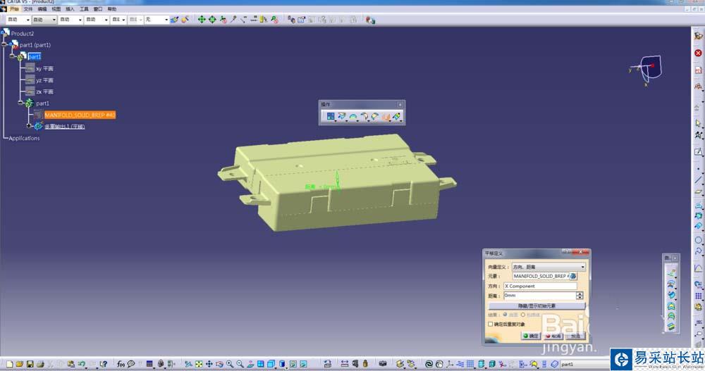 5、彈出平移定義對話框,選中需要生成面體的零件,方向選擇任意方向均可,距離一定要寫0,不然就和原零件的位置有差異了;