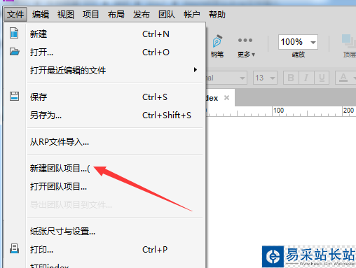 3、點擊了的文件的菜單之后,彈出了下一級菜單選中為新建團隊項目的選項。