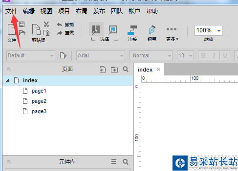 2、點擊了的Axure8的菜單中的文件的菜單。