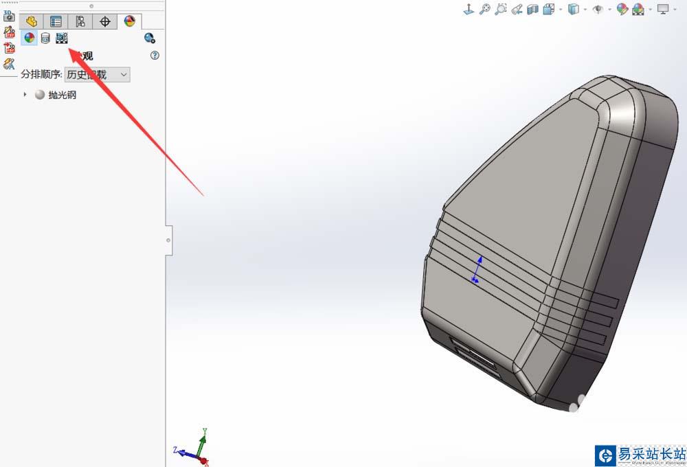 3、然后我們需要一些渲染之前的設(shè)置,在左側(cè)的零件特征欄找到最后一個(gè)彩色的球的標(biāo)志。
