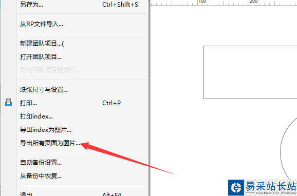3、點擊了的文件的菜單之后,彈出了下拉菜單選中為 導出所有頁面為圖片 的選項。