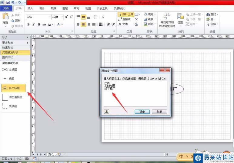 4、主標題設置好了之后點擊一下“多個標題”并在主標題的左邊添加一下多個標題,并寫上標題的內容