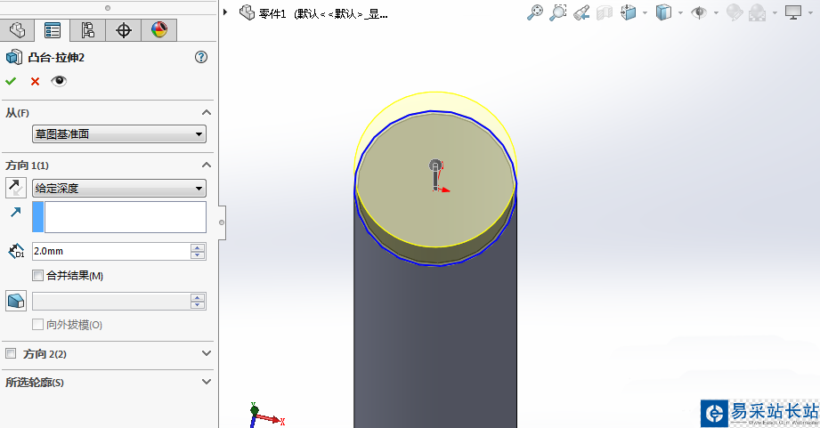 6、使用拉伸凸臺,對煙嘴進行建模。