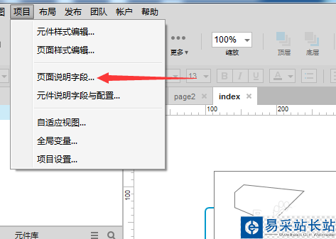 2、點擊了項目的菜單之后,彈出了下拉菜單選中為頁面說明字段的選項。