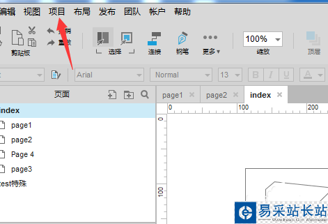 1、首先,打開一個的Axure8的界面當中,點擊項目的菜單。