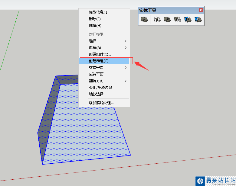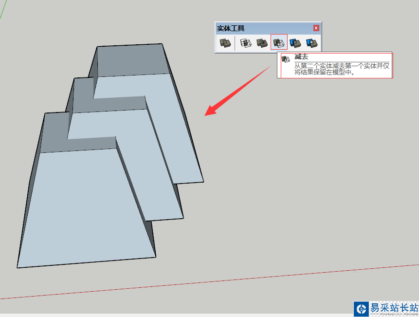 4、用實體工具的減去工具編輯模型。先后順序一定要對。