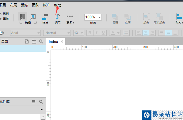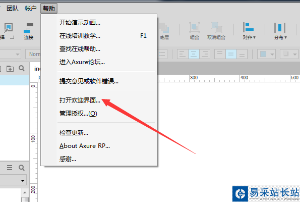 3、點擊了的Axure8的交互設(shè)計的菜單中幫助的菜單。