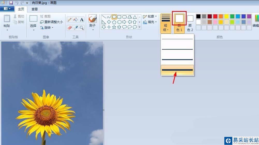 3、在形狀中選擇橢圓形,粗細(xì)程度選擇最粗的,顏色選擇白色。