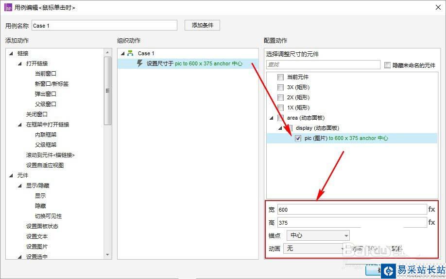 7、“矩形:1X”的“鼠標點擊時”的動作: