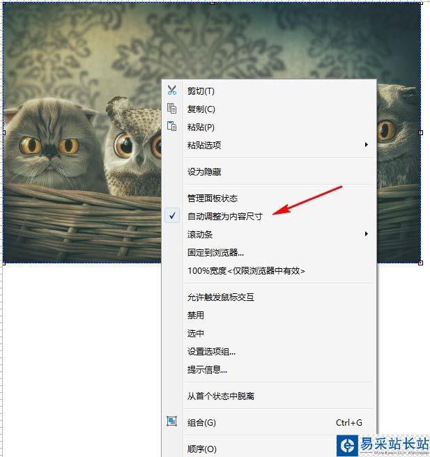 3、命名為此動態(tài)面板為“display”,并勾選為“自動調(diào)整為內(nèi)容尺寸”;