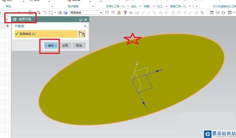 9、如下圖所示,出現(xiàn)“有界平面”對(duì)話框,曲線選擇“橢圓。”