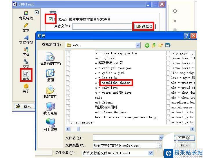 7、點擊聲音圖標——勾選播放聲音選項——點擊瀏覽,然后選擇一首和中秋有關的音樂——點擊打開就添加音樂了,最后就可以點擊預覽,滿意后就可以點擊保存和發布了。