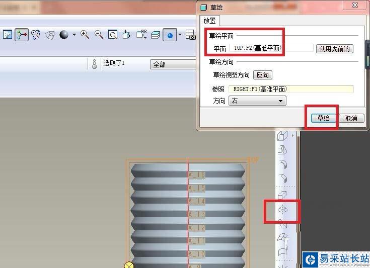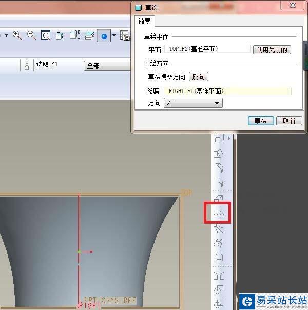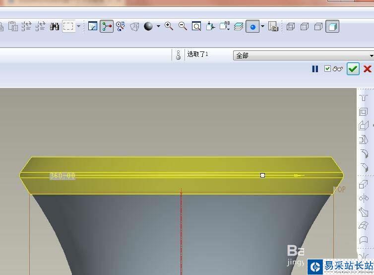 4、如下圖所示,退出草繪之后,只要點擊軟件右上角的√,就可以完成這個旋轉實體的創建了。