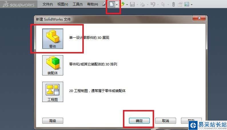 1、如下圖所示,打開SolidWorks軟件,新建一個空白的零件文件。