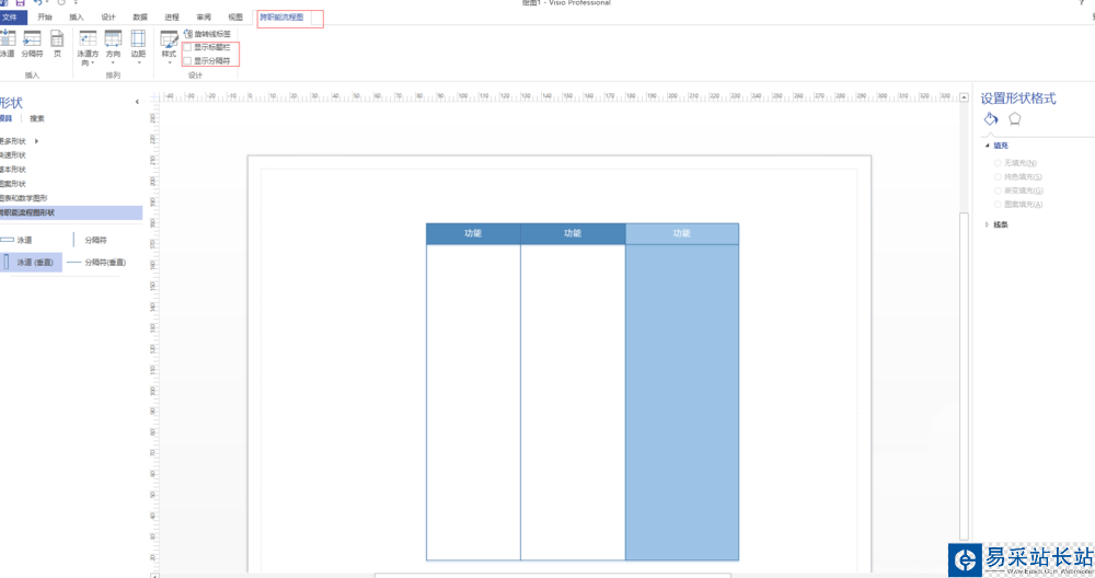 2、進頁面后,選擇跨職能流程圖形狀,如圖