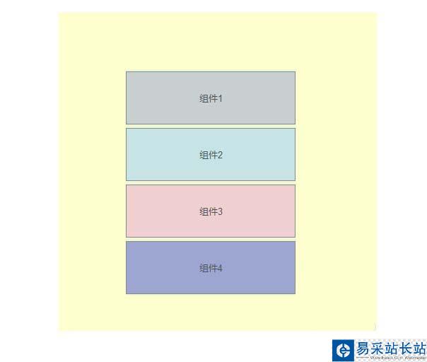 可以另復制3份”動態面:Module1“,分別命名為”Module2“、”Module3“、”Module4“,并修改其內容為“組件2”、“組件3”、“組件4”及填充色;“Module1“、”Module2“、”Module3“、”Module4“,垂直排列,組件上下之間無間隙~(間隙預留在了動態面板state1中),參考如下:
