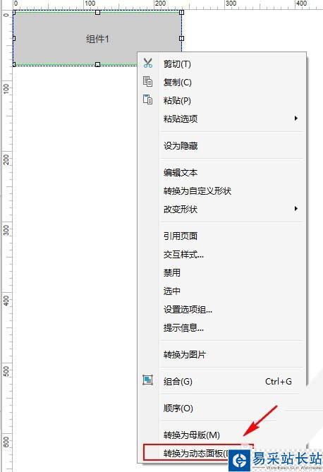 2.顯示”動態面板:組件1“;置于頂層