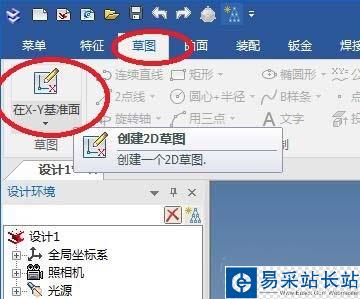 2、如下圖所示,打開標題欄中的“草圖”,點擊“在X-Y基準面”,創建2D草圖。