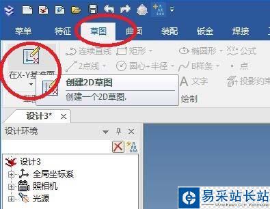 2、如下圖所示。點擊標題欄中的“草圖”,點擊工具欄中的“在X-Y基準面”。