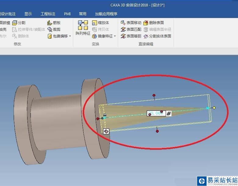 8、如下圖所示,我們拖動手柄修改圓錐體的尺寸,修改至我們滿意為止。