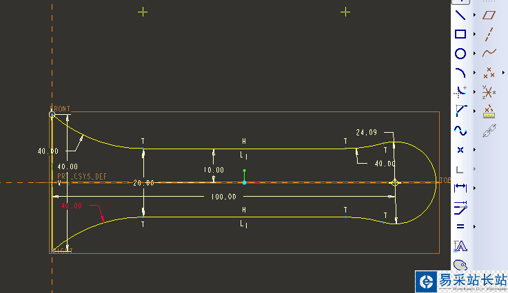 3、如下圖所示,這是畫拉伸截面圖。說明一下,這些尺寸屬性是筆者目測加估測來到,不準(zhǔn)確。