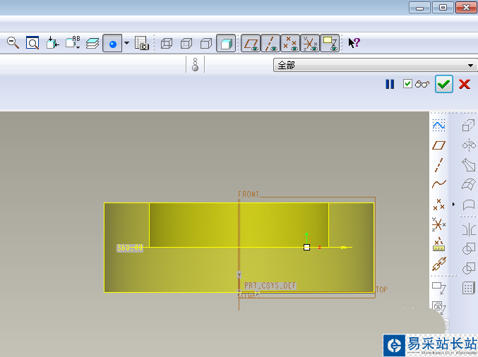 4)點擊右邊工具箱中的“√”,完成并退出草繪。
