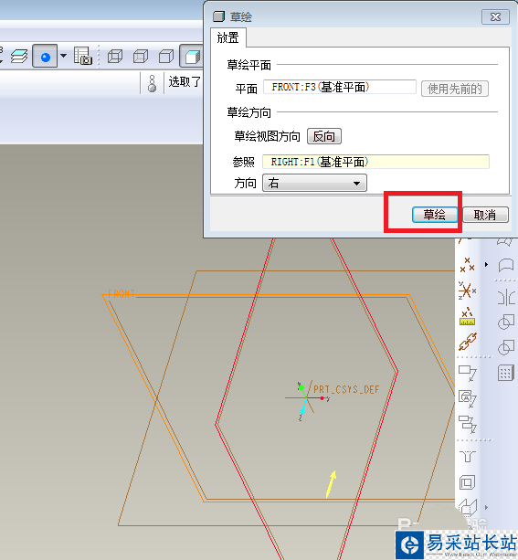 3、如下圖所示,進入到草繪環境,