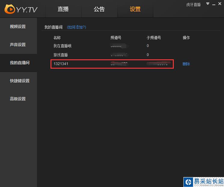 可以在“設(shè)置”-“我的直播間”里對(duì)已添加的直播間進(jìn)行管理