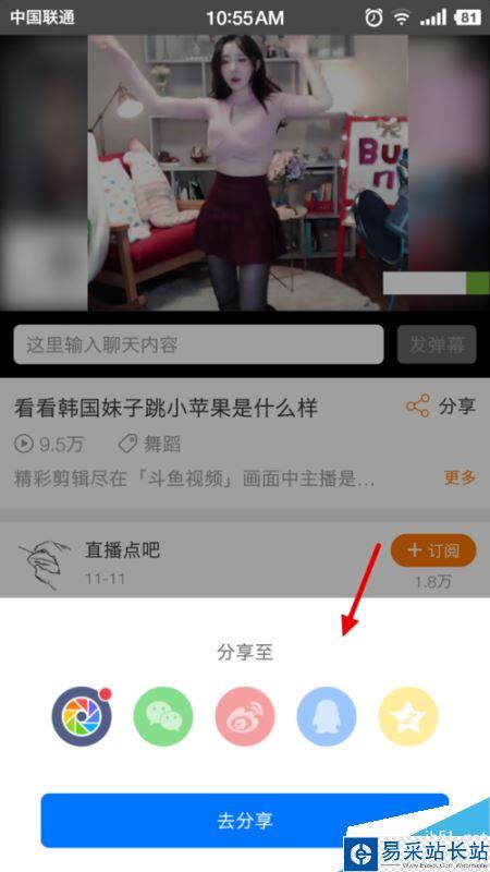 找到我們需要下載的視頻,看到右下角有【分享】按鈕,這個時候點擊分享,把視頻分享到QQ上面。