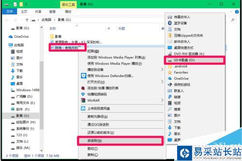 右鍵點擊歌曲《老地方的雨》,在右鍵菜單中點擊:發(fā)送到 - SD卡歌盤(O);