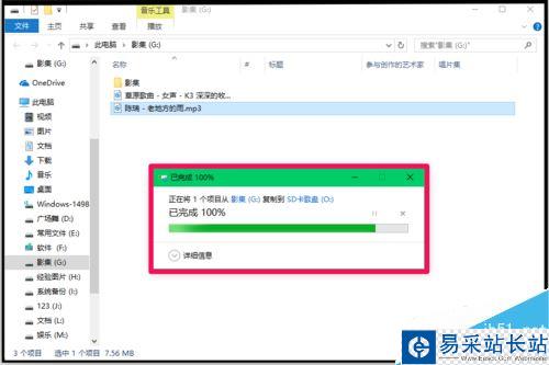 在電腦的本地磁盤G中,顯示了轉(zhuǎn)換的歌曲:老地方的雨.mp3,點擊便可以播放,把隨身聽的SD卡插入讀卡器再插入電腦,我們可以把轉(zhuǎn)換的歌曲發(fā)送到隨身聽的SD卡中。