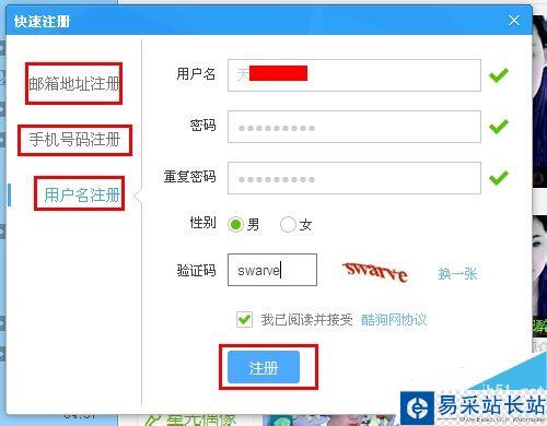有三種注冊模式——郵箱、手機及賬號。為方便我這里選擇賬號注冊: