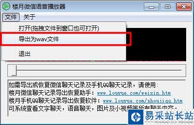 3,另外我們還可以將slk文件轉(zhuǎn)換為wav格式文件,只需要點(diǎn)擊“文件”“導(dǎo)出為wav文件”即可將剛才播放的文件轉(zhuǎn)換為wav文件。wav文件是通用的音頻格式,以后我們就可以使用任意播放器打開wav格式文件。