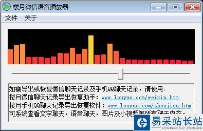 2,然后我們將復(fù)制到電腦上的slk文件,拖拽到“樓月微信語(yǔ)音播放器”上即可進(jìn)行播放。有一點(diǎn)要注意的是,我們要下載最新版V3.0才可以播放長(zhǎng)度超過(guò)一分鐘的語(yǔ)音消息,目前只有樓月軟件官網(wǎng)上可以下載到最新版本,該軟件是一款完全免費(fèi)的軟件。并且老版本的軟件的話,需要先將slk后綴手動(dòng)修改為amr后才可以播放,新版本的話,不需要修改后綴,直接拖拽到軟件界面上即可播放。