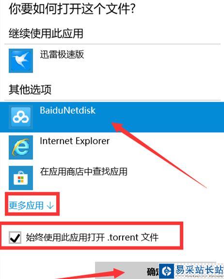 勾選下方的“始終使用此應(yīng)用打開(kāi) .torrent文件”,點(diǎn)擊確定,