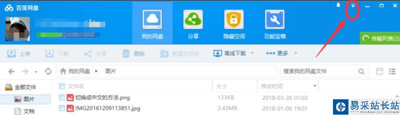 還有一種方法,打開(kāi)百度網(wǎng)盤(pán),進(jìn)入界面,點(diǎn)擊右上方的三角圖標(biāo),