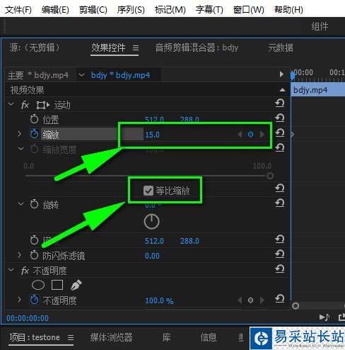 5、然后指定好畫面的縮放比例,比如我指定成等比例和百分之十五的縮放。