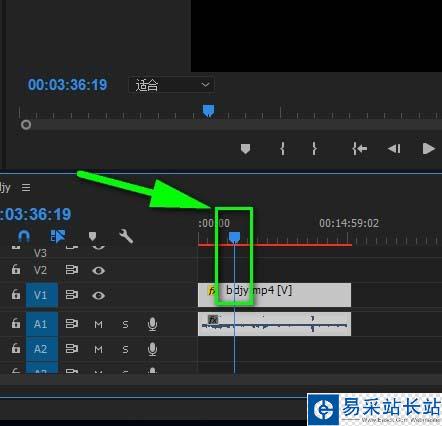 1、新建序列把要放大視頻畫面的視頻導入,然后用“箭頭”工具點擊軌道上的視頻(不點擊可能無法選中哦)并且控制好時間線(我的放在開頭)。