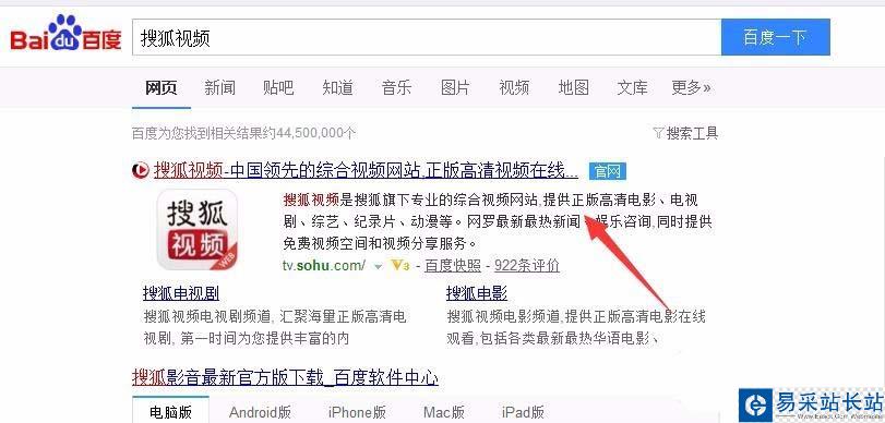 1、首先在百度上搜索搜狐視頻,進(jìn)入搜狐視頻的官方網(wǎng)站。