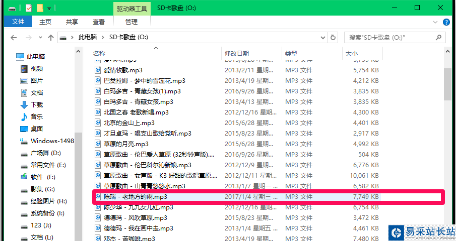 10、打開SD卡歌盤,我們就可以看到歌曲《老地方的雨》已儲存在SD卡歌盤中了。