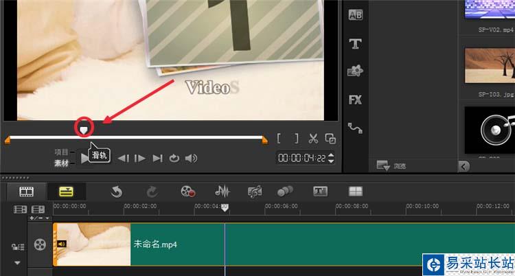 2、在插入視屏之后我們就可以對視屏進行剪輯了。在軟件左上角的視屏預覽區域。選擇我們需要進行截取的片段,拖動進度條上方的游標選擇剪輯區域。