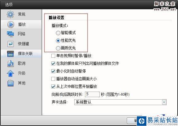 或者在快播播放器設置-播放-“播放模式”調到“性能優先”模式或“畫質優先”模式后看看。如圖: