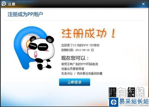 圖: PPTV 會員注冊成功提示界面