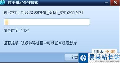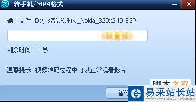 3、選擇設備的過程中,播放暫停,開始轉碼后,視頻播放會重新開始。您可以一邊轉碼一邊播放(允許打開源視頻以外的片子進行播放)。轉碼過程中支持【暫停】、【停止】轉碼流程。