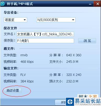 C.點擊高級設置,可選擇文件類型、分辨率、視頻碼率