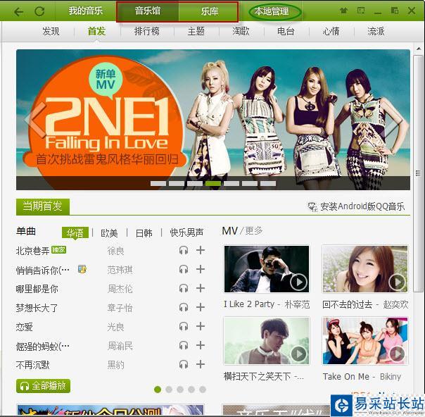 3.在線音樂主要在音樂館和樂庫中選擇,本地音樂可以在本地管理中插入到播放器中播放。