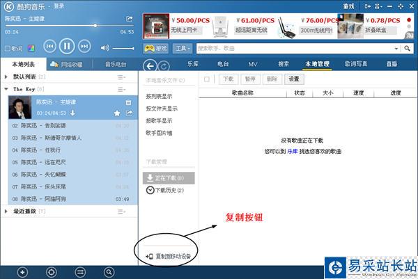 酷狗還有一個非常好用的功能,就是能一鍵復(fù)制到移動設(shè)備中去